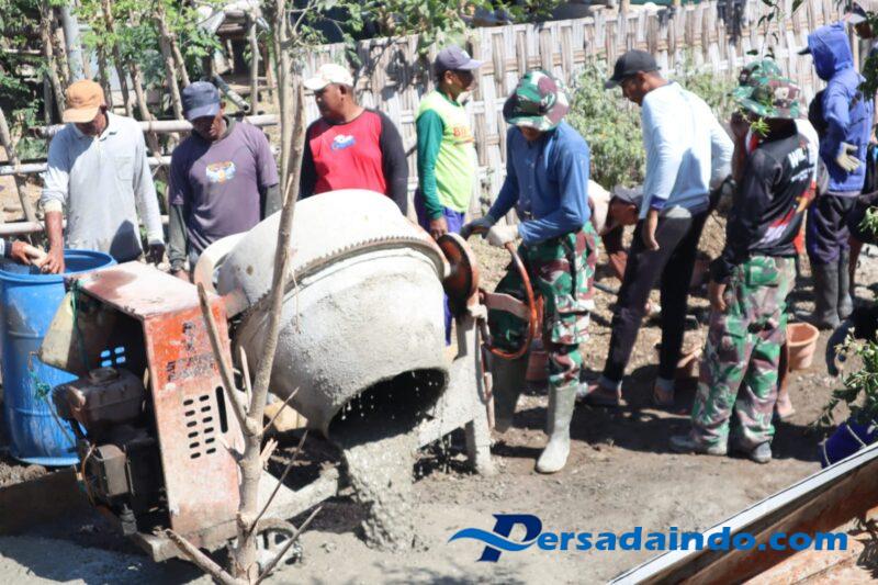 ‎Kegiatan ini dikerjakan secara gotong royong antara personel Satgas TMMD bersama masyarakat setempat. Kekompakan dan kebersamaan tampak jelas ketika TNI dan warga bahu-membahu mengaduk serta menuangkan material cor, sepanjang 50 meter yang akan dikerjakan.