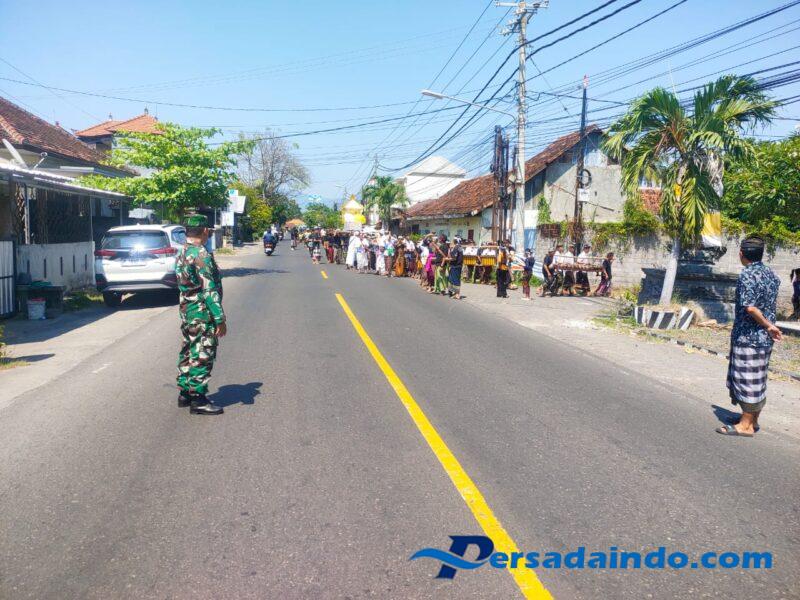 Buleleng, Banjar – Babinsa Temukus Koramil 1609-06/Banjar, Serka Sukarjo bersama Bhabinkamtibmas dan Pecalang melaksanakan pengamanan prosesi kremasi salah satu warga Banjar Dinas Labuhan Aji, Desa Temukus, Kecamatan Banjar, Kabupaten Buleleng (Selasa/23/9)