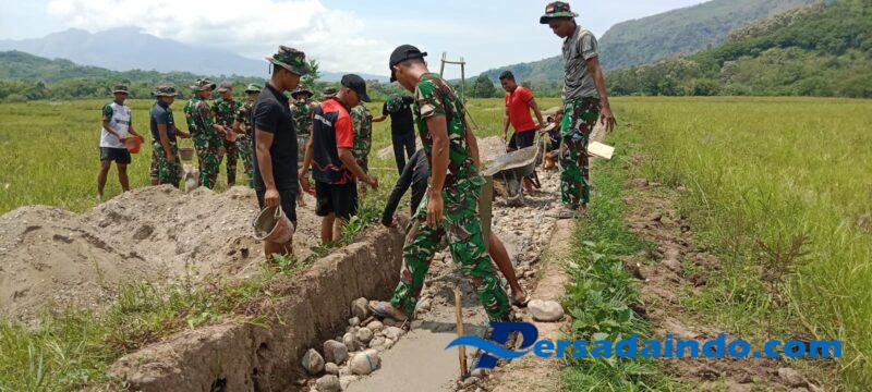 Pembangunan saluran irigasi ini menjadi salah satu sasaran utama TMMD dalam mendukung peningkatan produktivitas pertanian masyarakat Desa Benteng Tawa. Dengan semangat gotong royong, anggota TNI bersama warga bahu-membahu menyelesaikan pekerjaan di lapangan meski di tengah kondisi cuaca yang berubah-ubah.