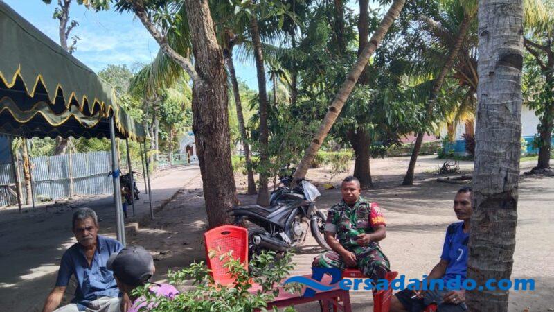 NTT-ALOR_, Babinsa Koramil 02/Pantar Kodim 1622/Alor Sertu Lodewik Kay melaksanakan kegiatan pemantauan wilayah sekaligus komsos dengan masyarakat yaitu Bapak Daud Karel Serang, yang bertempat di halaman rumahnya di Desa Bandar, Kecamatan Pantar, Kabupaten Alor, Saptu (12/07/2025)