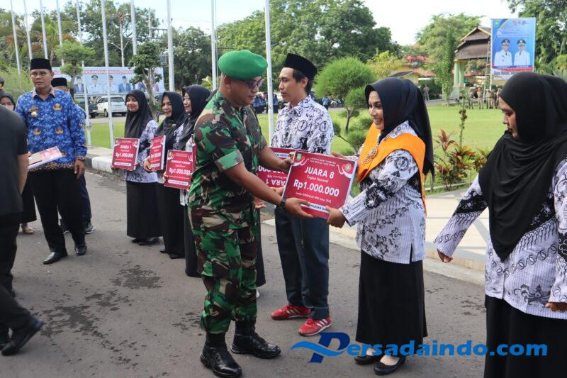 Suasana upacara berlangsung tertib, meriah, dan penuh kekeluargaan, mencerminkan kuatnya kebersamaan antara pemerintah daerah, TNI, dan insan pendidikan dalam memajukan kualitas pendidikan di Kabupaten Sumbawa. (Pendim Sumbawa).