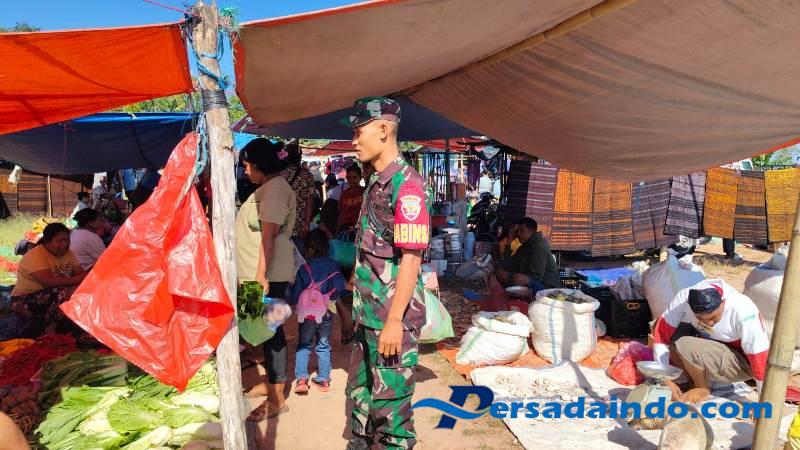 Ende, Dalam rangka menjaga stabilitas keamanan dan mempererat hubungan dengan masyarakat, Babinsa Koramil 1602-04/Maurole, Praka Khairil Mustafa, melaksanakan kegiatan komunikasi sosial (Komsos) dan pengamanan wilayah (Pamwil) di Pasar Lokal Detukeli, Desa Detukeli, Kecamatan Detukeli, Kabupaten Ende, Rabu (13/08/2025).