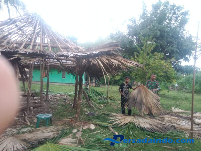 TTS – Wujud nyata kedekatan TNI dengan rakyat kembali ditunjukan oleh Babinsa Koramil 1621-04/Amanatun Utara Serka Amos Nau membantu pemasangan atap dapur milik salah satu warga binaannya di Desa Baus Kecamatan Boking Kabupaten Timor tengah selatan, Selasa (10/06/2025).