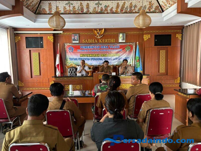 Klungkung,- Upaya dan langkah dalam percepatan operasional Koperasi Merah Putih terus dilakukan oleh Pemerintah Desa Tojan beserta berbagai pihak. Upaya tersebut kembali di wujudkan dengan melaksanakan kegiatan Musyawarah Desa Khusus ( Musdesus ) pada Jumat ( 07/11/25 ).