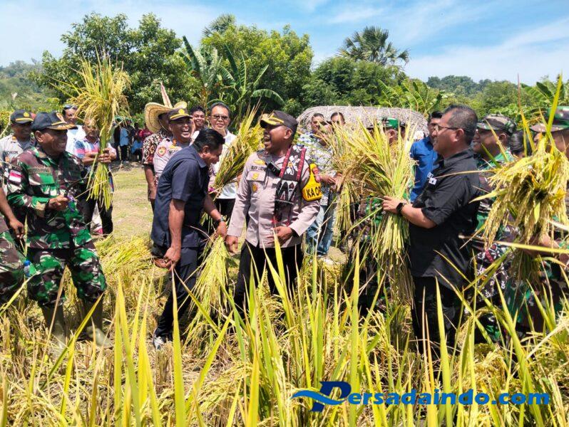 Persadaindo.com – NTT-CAMPLONG – Panen Raya Padi Mewujudkan Swasembada Pangan Kabupaten Kupang Emas Seluas 60 Hekta Are, bertempat di Desa Pantulan, Kecamatan Sulamu, Kabupaten Kupang, Kamis (17/4/2025).