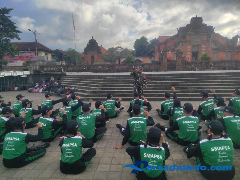 Hari ini adalah hari kedua dan terakhir pelaksanaan pelatihan dalam kegiatan MPLS calon murid baru SMA Pariwisata Saraswati Klungkung yang diikuti oleh 450 orang,”ucap Serka wayan.