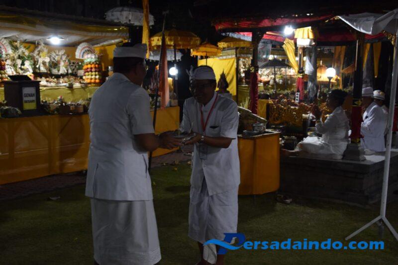 Buleleng, Bali – Dandim 1609/Buleleng, Letkol Czi Ibnu Ria Indrawan, SH., M.Han., bersama Bupati Buleleng, dr. I Nyoman Sutjidra, Sp.OG., menghadiri Persembahyangan Puncak Piodalan ke-32 di Pura Agung Jagatnatha Buleleng, Kamis malam (10/7). Suasana yang sakral dan penuh khidmat menyelimuti jalannya upacara, yang dimulai pukul 18.00 WITA dan berakhir pada pukul 20.00 WITA. Prosesi pujawali ini dipuput oleh Jro Mangku Gede Suyasa dan diikuti oleh sekitar 100 umat Hindu yang datang dengan penuh rasa bhakti.