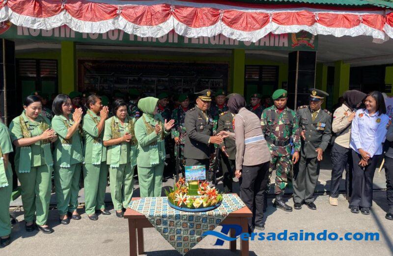 Rombongan dari Polres TTU yang dipimpin oleh Kasat Lantas Polres TTU, Iptu Niken Ayu Prabandari bersama para anggota, tiba di Makodim dengan membawa nasi tumpeng bertuliskan “Dirgahayu TNI ke-80 – TNI PRIMA, TNI RAKYAT, INDONESIA MAJU”., Kehadiran Personel Polres TTU disambut hangat oleh para perwira, anggota, dan Ibu Persit, keluarga besar Kodim 1618/TTU. Suasana penuh kekeluargaan terasa saat kedua institusi tersebut saling bertukar salam, tawa, dan doa bersama, menandai hubungan yang harmonis dalam menjaga keamanan dan ketertiban di wilayah TTU.