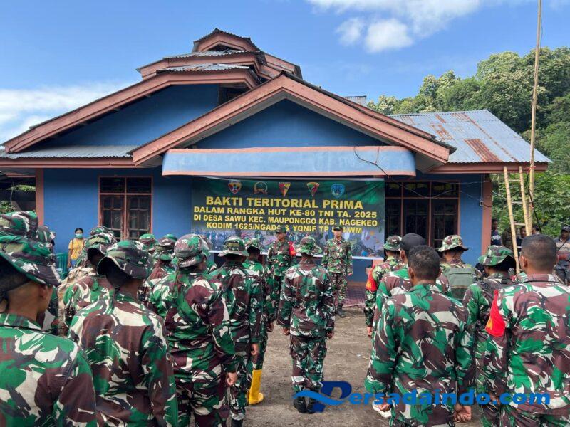 Nagekeo, – Dalam rangka memperingati Hari Ulang Tahun (HUT) ke-80 Tentara Nasional Indonesia (TNI) Tahun Anggaran 2025, Kodim 1625/Ngada bekerja sama dengan Batalyon TP 834/WM melaksanakan kegiatan Bakti Teritorial Prima di Desa Sawu, Kecamatan Mauponggo, Kabupaten Nagekeo, Nusa Tenggara Timur.