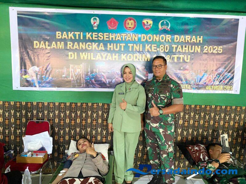 NTT-Kefamenanu., Dalam rangka memperingati Hari Ulang Tahun ke-80 Tentara Nasional Indonesia (TNI) Tahun 2025, dengan tema “TNI Prima, TNI Rakyat, Indonesia Maju”. Kodim 1618/TTU menyelenggarakan kegiatan donor darah, Kegiatan tersebut digelar di Aula Makodim 1618/TTU, Jl. Ahmad Yani, Kelurahan Kefa Selatan, Kecamatan Kota Kefamenanu, Kabupaten TTU, pada Kamis (2/10/2025).