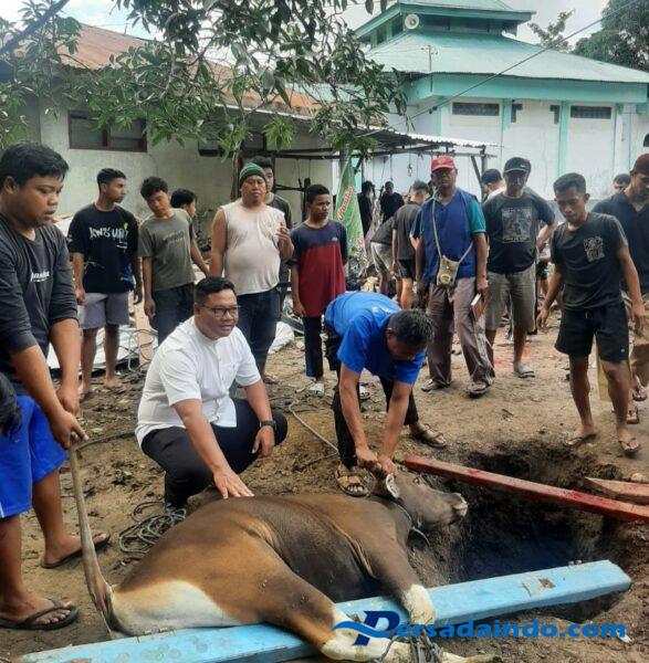NTT-KEFAMENANU., Jumat 06 Juni 2025., Suasana penuh khidmat menyelimuti Masjid Al-Mujahidin, Komplek Makodim 1618/TTU, Jl. Ahmad Yani, Kelurahan Kefa Selatan, Kecamatan Kota Kefamenanu, Komandan Kodim 1618/TTU Letkol Arm Didit Prasetyo Purwanto, S.E., mengikuti prosesi pemotongan hewan qurban yang dilaksanakan usai Shalat Idul Adha 1446 H.