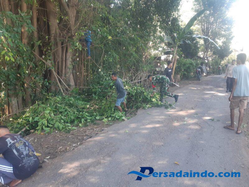 NTT-SIKKA Pratu Yelfrid Leonardus, Babinsa Koramil 1603-04/Kewapante Kodim 1603/Sikka, melaksanakan kegiatan kerja bakti pembersihan bahu jalan dan ranting pohon yang melebar ke jalan di Desa Wolomapa, Kecamatan Hewokloang, Kabupaten Sikka, Sabtu(12/07/2025).