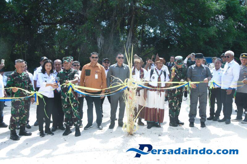 NTT-KUPANG, – Sebagai tanda selesainya pembangunan jalan sepanjang 1,4 kilometer hasil program TNI Manunggal Membangun Desa (TMMD) Ke-124 Tahun Anggaran 2025, pita secara simbolis digunting di titik nol kilometer jalan penghubung antara Dusun II menuju Dusun IV dan V Momen peresmian ini menandai siapnya akses jalan tersebut digunakan masyarakat Desa Huilelot, Kecamatan Semau, Kabupaten Kupang. Rabu (04/06/2025