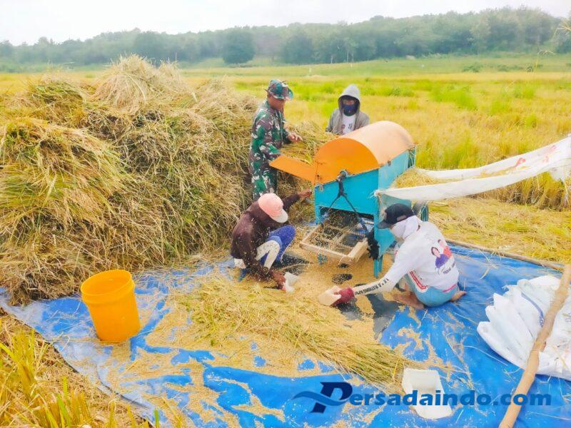 • Jalin Kedekatan, Babinsa Bantu Petani Rontok Padi di Sawah