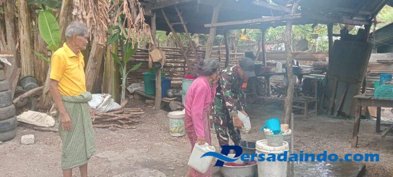 Rote Ndao – Serka Erens Natu Babinsa Koramil 02/Pantai Baru Kodim 1627/Rote Ndao, bantu Warga Ibu Kornalia Lona Bola(84) menimbah air untuk Kebutuhan mencuci,Desa Lakamola Kecamatan Rote Timur Kabupten Rote Ndao.Kamis(31/7/25)