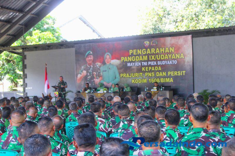 Bima, 3 Juni 2025 — Pangdam IX/Udayana Mayjen TNI Piek Budyakto, S.H., M.H., bersama Ketua Persit KCK Daerah IX/Udayana Ny. Indah Widhianti, melakukan kunjungan kerja ke Kodim 1608/Bima. Kunjungan ini turut didampingi Danrem 162/Wira Bhakti Brigjen TNI Moch. Sjasul Arief, S.Sos., serta jajaran pejabat Kodam IX/Udayana. Penyambutan berlangsung meriah, dihadiri Forkopimda Kota/Kabupaten Bima, unsur TNI-Polri, serta masyarakat dan prajurit Kodim 1608/Bima.