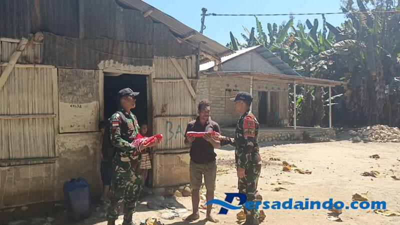 Malaka – Pos Haslot memberikan bendera merah putih kepada warga perbatasan dalam rangka memeriahkan hari kemerdekaan RI ke-80 di Dusun Motamasin, Kecamatan Kobalima Timur, Kabupaten Malaka. Rabu (13/08/2025).