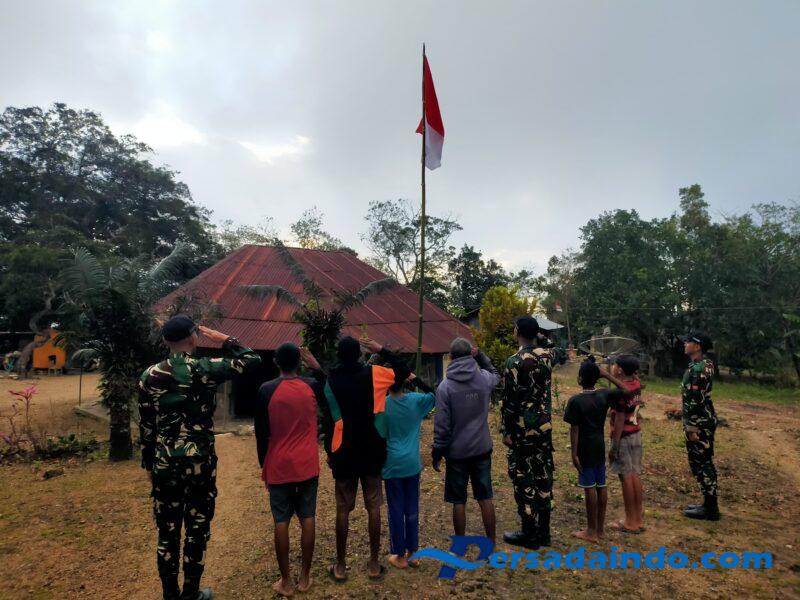 • Jelang HUT RI Ke-80, Satgas Yonif 741/GN Pos Laktutus Berikan dan Kibarkan Bendera Merah Putih di Rumah Warga Binaan