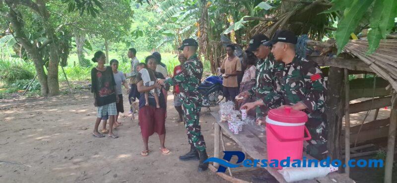 Malaka – Pos Haslot bagikan bubur kacang hijau dan roti kepada masyarakat di sekitaran Pos Haslot, Dusun Motamasin, Desa Alas Selatan, Kecamatan Kobalima Timur, Kabupaten Malaka. Jumat (13/06/2025).