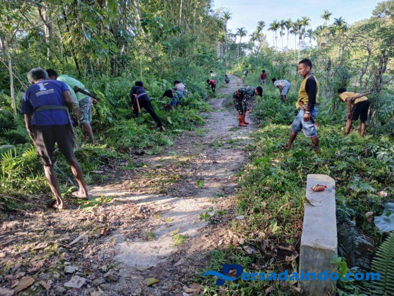 Babinsa Koramil 01/Laratama Sertu Lukas Malo bersama masyarakat Desa Lolo Ole bersama sama membersihkan Jalan penghubung Antara dusun 2 dan dusun 1