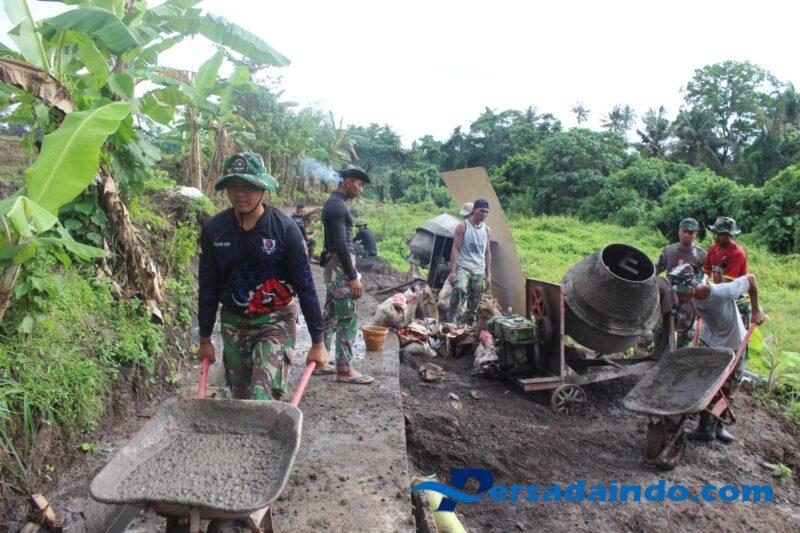 Di lapangan, Dan SSK Lettu Cpl I Nyoman Prajana memimpin langsung jalannya pekerjaan bersama prajurit TNI dan warga. Dengan penuh semangat, ia mengatur pembagian tugas, memantau kualitas pengerjaan, sekaligus ikut bekerja bersama warga. “Kalau kita turun langsung, warga juga termotivasi. Kebersamaan ini adalah kekuatan utama TMMD,” katanya.