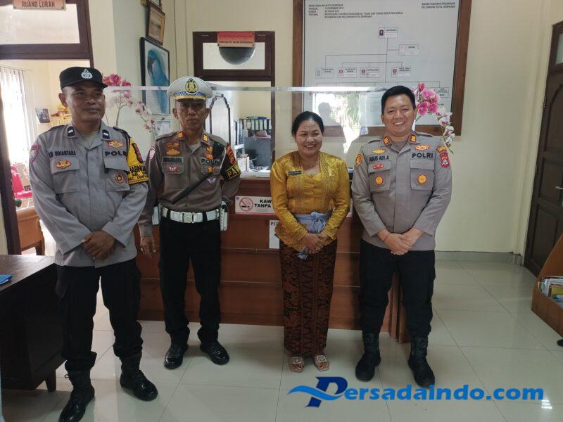 Kegiatan yang berlangsung mulai pukul 10.20 WITA tersebut disambut langsung oleh Kepala Kelurahan Serangan, Ibu Ni Wayan Sukarnami. Turut mendampingi Kapolsek dalam kegiatan ini antara lain Kanit Lantas Polsek Densel, Bhabinkamtibmas Kelurahan Serangan, dan P.S. Kasi Humas Polsek Densel.