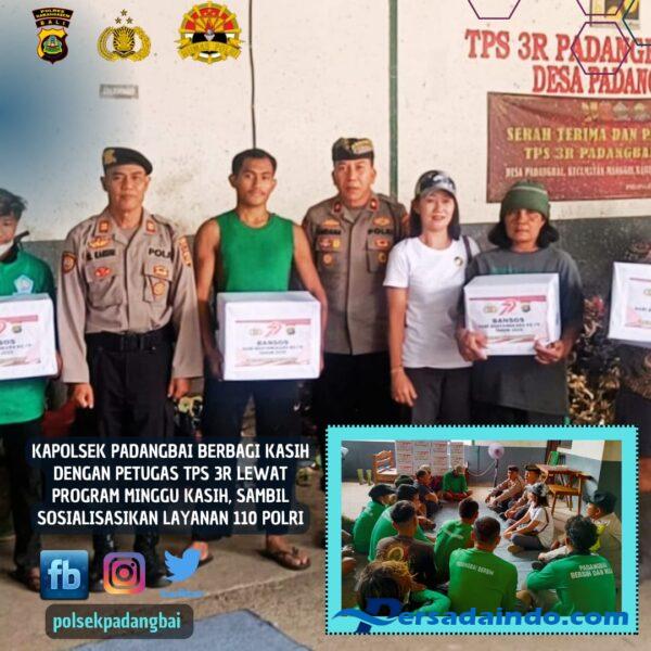 • Kapolsek Padangbai berbagi kasih dengan petugas TPS 3R lewat Program Minggu Kasih, sambil sosialisasikan layanan 110 Polri.