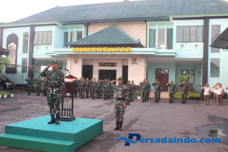 Pasukan upacara terdiri dari unsur Perwira, Bintara, Tamtama serta Pegawai Negeri Sipil (PNS) Kodim 1616/Gianyar yang mengikuti kegiatan dengan penuh semangat dan kedisiplinan.