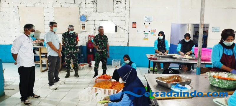 Dalam kesempatan tersebut, Kapten Inf Bambang meninjau secara detail proses produksi mulai dari penerimaan bahan baku, penyimpanan, proses persiapan, hingga pengolahan makanan. Tujuan kegiatan ini adalah untuk memastikan seluruh tahapan produksi berjalan sesuai prosedur higienitas dan standar keamanan pangan yang telah ditetapkan oleh pemerintah.