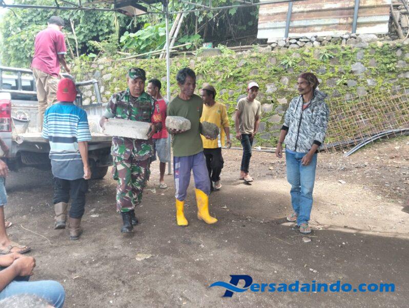 Dalam kegiatan tersebut, Serka Petrus Ghobe bersama warga bahu-membahu melaksanakan pekerjaan secara gotong royong dengan penuh semangat. Kegiatan berlangsung aman dan lancar hingga selesai.