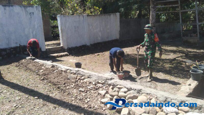 NTT-KUPANG, Babinsa Koramil 1604-03/Naikliu, Serda Didit Sumanto bersama perangkat Desa Binafun dan warga setempat melaksanakan kegiatan Karya Bakti pembangunan pondasi penahan halaman di Kantor Desa Binafun, Kecamatan Amfoang Tengah, Kabupaten Kupang. Kegiatan ini dilaksanakan sebagai bentuk kepedulian TNI dalam mendukung pembangunan infrastruktur dan pelayanan masyarakat di wilayah binaan. Senin (04/08/2025).