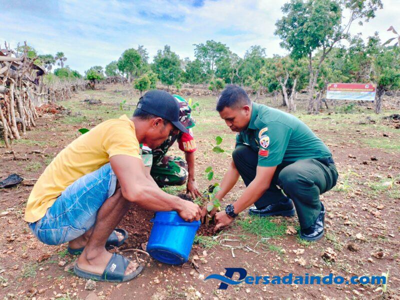 Rote Ndao – Wujud Cinta dan Peduli lingkungan, Kodim 1627/Rote Ndao melakukan Karya Bakti Penanaman bibit pohon mangga di desa Helebeik Kecamatan Lobalain Kabupaten Rote Ndao.