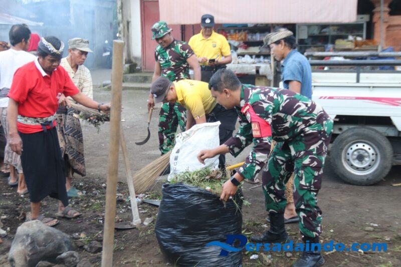 Danramil 1610-01/Klungkung Lettu Cpl Putu Agus menjelaskan bahwa karya bhakti ini dilaksanakan dengan sasaran bersih-bersih sampah di sekitaran Balai Banjar Adat Dusun Bajing sampai dengan tempat pengambilan air suci ( Beji ).