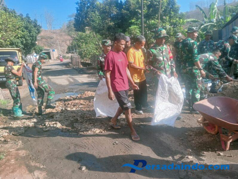 Donggo, Bima _ Kamis (4/9/2025), anggota Koramil 1608-05/Donggo yang dipimpin oleh Bati Tuud Pelda Andang M. melakukan Karya Bhakti bersama warga Dusun Punti, Desa Punti, Kecamatan Soromandi, Kabupaten Bima. Kegiatan ini difokuskan pada perbaikan jalan rusak di jalur lintas Punti–Sampungu yang selama ini menjadi kendala bagi warga.