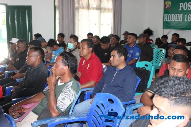 SUMBA BARAT – Kasdim 1613/Sumba Barat Letkol Caj Mulyono memimpin kegiatan technical meeting dalam rangka persiapan pembukaan Turnamen Sepak Bola Dandim Sumba Barat Cup.