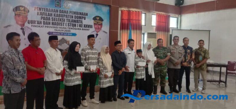 Dompu, NTB– Dalam upaya memperkuat semangat religius dan meningkatkan prestasi generasi Qur’ani, Pemerintah Kabupaten Dompu menggelar kegiatan Penyerahan Dana Pembinaan bagi Kafilah Kabupaten Dompu yang mengikuti Seleksi Tilawatil Qur’an dan Hadist (STQH) ke-XXVIII Tingkat Provinsi NTB, bertempat di Aula Pendopo Bupati Jumat 2025 Juli 2025