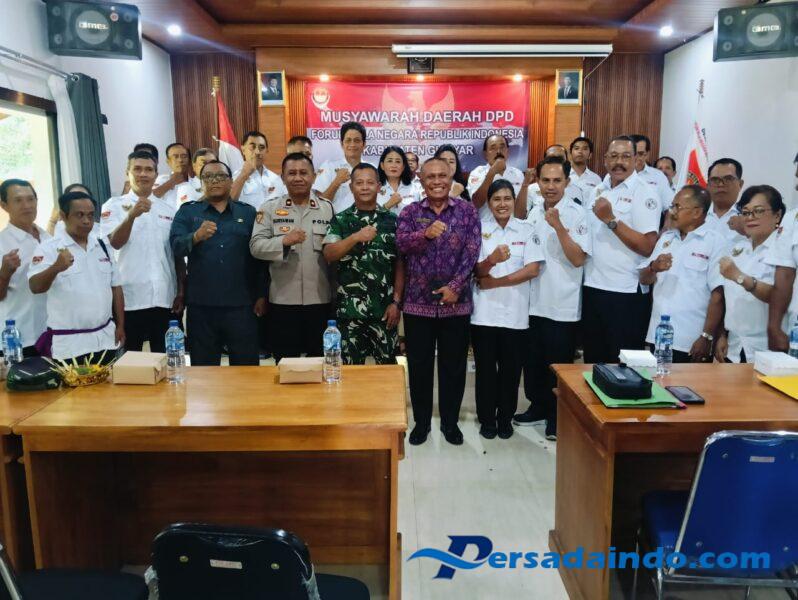 Hadir dalam kegiatan tersebut Bupati Gianyar diwakili Asisten I Setda Gianyar, Dandim 1616/Gianyar diwakili Kasdim 1616/Gianyar, Kapolres Gianyar diwakili Kapolsek Gianyar, Plt. Kaban Kesbangpol Gianyar diwakili Kabid Politik Dalam Negeri, Ketua DPW FBN Provinsi Bali, Ketua Mandat FBN Kabupaten Gianyar, serta para calon pengurus DPD FBN Kabupaten Gianyar. Kehadiran Kasdim 1616/Gianyar menjadi bentuk dukungan nyata Kodim 1616/Gianyar terhadap upaya penguatan semangat bela negara di wilayah, sekaligus memperkuat sinergi antara aparat keamanan, pemerintah daerah, dan masyarakat.