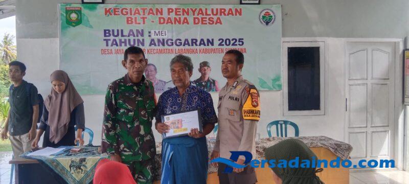 NTB – Sumbawa, Babinsa Desa Jaya Makmur, Serda Abdurahman, yang merupakan anggota Koramil 1607-02/Empang, melaksanakan pendampingan dalam kegiatan penyaluran Bantuan Langsung Tunai Dana Desa (BLT-DD) untuk bulan April tahun 2025. Kegiatan ini berlangsung di kantor Desa Jaya Makmur, Kecamatan Labangka, Kabupaten Sumbawa. Jumat (16/5/2025).