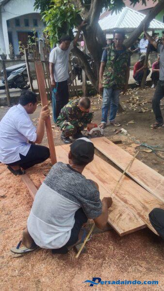 Dengan penuh empati dan semangat kebersamaan, Sertu Irwan terjun langsung bersama warga dalam proses pengerjaan papan makam, sebagai bentuk dukungan moril dan penguatan solidaritas antarwarga. Selain membantu secara fisik, Sertu Irwan juga menyampaikan pesan-pesan kebersamaan dan pentingnya menjaga nilai-nilai kemanusiaan di tengah masyarakat.