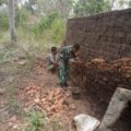 TNI dan Warga Gotong Royong Bangun Dinding Penu...