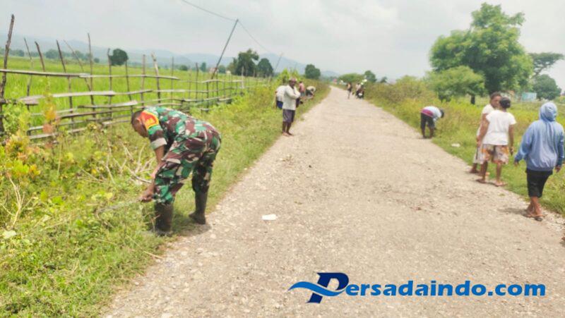 Satunya langkah Babinsa dan rakyat terlihat jelas saat alat sederhana sekop, sabit, dan sapu lidi berubah menjadi simbol kerja sama. Gelak tawa terdengar di antara riuhnya alat kerja, menandai betapa damai dan ringan tugas mulia ini.