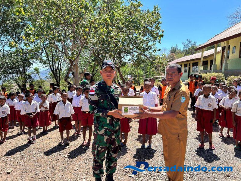 Oelbinose – Prajurit Satgas Pamtas RI-RDTL melaksanakan kegiatan anjangsana sekaligus membagikan buku bacaan keagamaan, serta melatihkan kedisiplinan di SDN Oelbinose yang berada di Desa Kasinifu, Kec. Mutis, Kab. TTU. Selasa (1/10)