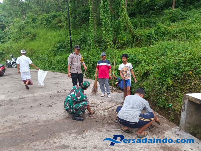 – Pembersihan tanah dan sisa material pasca perbaikan jalan