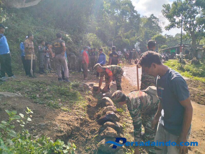 Kegiatan ini melibatkan TNI, Polsek, Pol PP, Pemdes, dan sekitar 20 warga desa. Mereka bersama-sama menimbun jalan berlobang dan menggali saluran pembuangan air mulai dari jembatan Sorimonca hingga di depan SMPN 1 Donggo.
