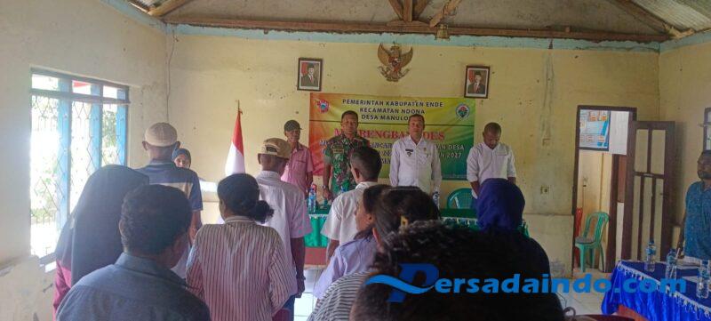 Ende, – Babinsa Ramil 1602-01/Ende aktif terlibat dalam kegiatan Musrenbang Desa DU-RKP TA. 2026 yang dilaksanakan di Kantor Desa Manulondo, Kecamatan Ndona, Kabupaten Ende. Kegiatan ini berlangsung mulai pukul 09.30 Wita hingga selesai dengan dihadiri sejumlah tokoh penting di wilayah tersebut.