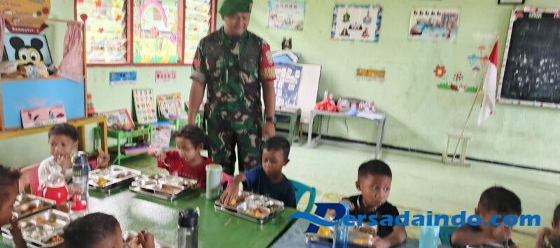 Ende – Babinsa Koramil 1602-01/Ende, Praka Taruna Diharjaya DE, turut hadir dan mendukung pelaksanaan kegiatan pembagian makan bergizi gratis di TK Kartika Kusuma Udayana VII-10 Kompi C, Kelurahan Paupire, Kecamatan Ende Tengah, Kabupaten Ende. 18/07/2025