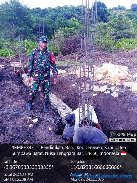 Sumbawa Barat – NTB, Babinsa Desa Belo, Koramil 1628-05/Jereweh Serda Sukardin, melakukan pengawasan langsung terhadap pembangunan Koperasi Merah Putih yang terletak di Desa Belo. Kegiatan ini merupakan bagian dari upaya TNI dalam mendukung pengembangan ekonomi lokal serta memastikan pembangunan berjalan lancar sesuai rencana, Senin (24/11/2025).