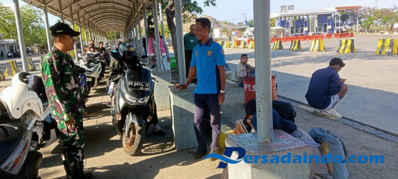 Sertu Chaeruddin tampak aktif melakukan pemantauan di area pelabuhan, berkoordinasi dengan petugas keamanan pelabuhan, serta memberikan imbauan kepada masyarakat agar tetap menjaga ketertiban dan keselamatan selama berada di area penyeberangan.