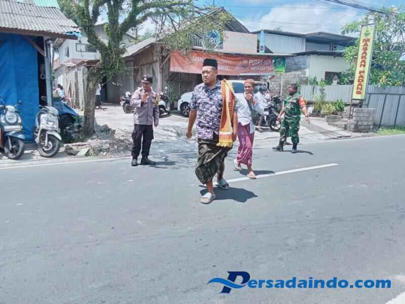 Babinsa Desa Tegallalang Koramil 1616-06/Tegallalang, Sertu I Gusti Putu Arbajaya, turun langsung bersama Bhabinkamtibmas Desa Tegallalang, Aiptu Dewa Made Sandat, serta didukung unsur Banser untuk memastikan jalannya kegiatan ibadah berlangsung kondusif. Kehadiran aparat pengamanan di lapangan tidak hanya memberikan rasa aman bagi para jemaah, tetapi juga membantu kelancaran lalu lintas di jalur utama Gentong–Tegallalang yang dikenal rawan macet.