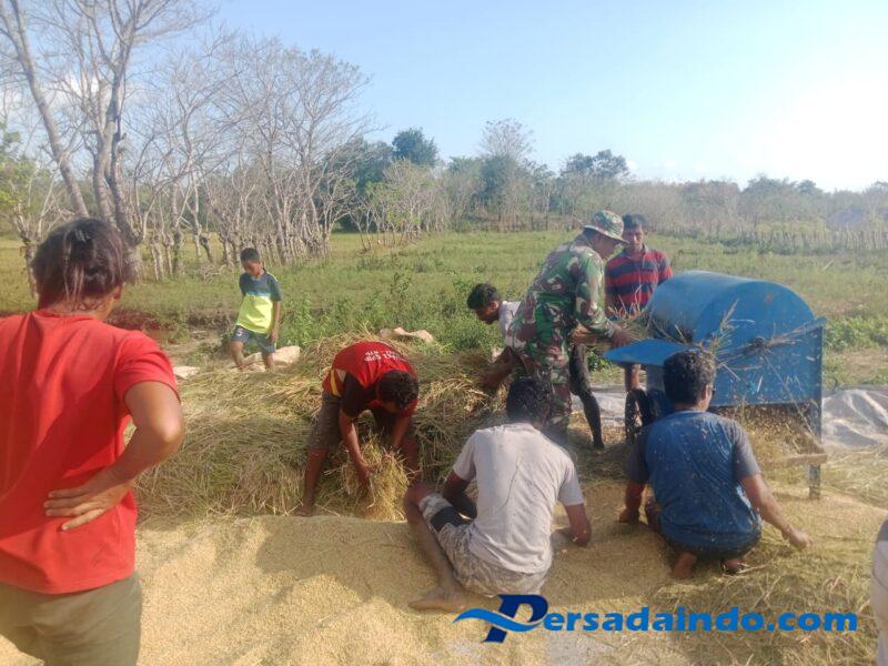 Kegiatan ini merupakan bagian dari upaya TNI dalam mendukung ketahanan pangan nasional serta mempererat kemanunggalan TNI dan rakyat. Serka Dominggus Lay bersama para petani bahu membahu di tengah sawah, menggunakan alat perontok tradisional untuk memisahkan gabah dari tangkainya.